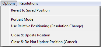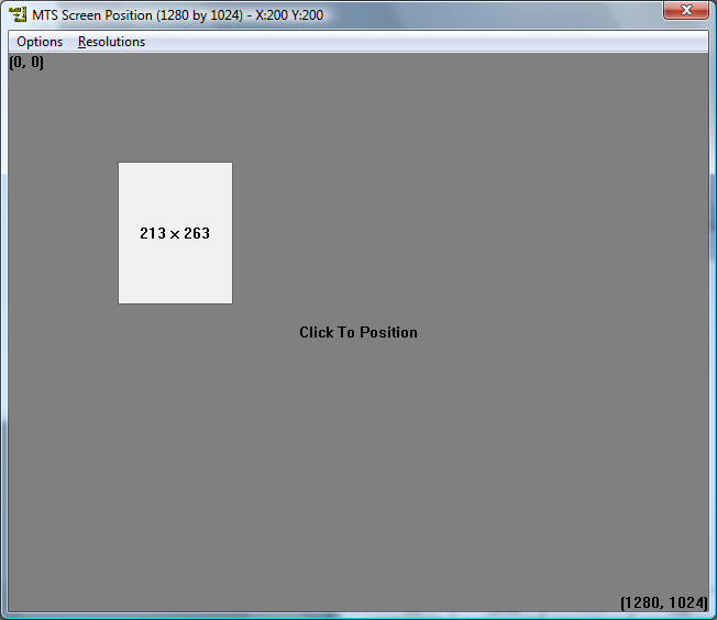 When you click on the "..." next to the Top/Left position, a Screen Position window will open to provide a visual tool for setting the opening screen position. By default, the current screen resolution is used - for targets with different screen resolutions or layouts, use the Options and Resolutions menus.