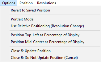 The Options menu provides various options available when working with the Screen Position window.