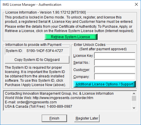 To license My-T-Soft, select "System License Options", then click on "Retrieve System License"