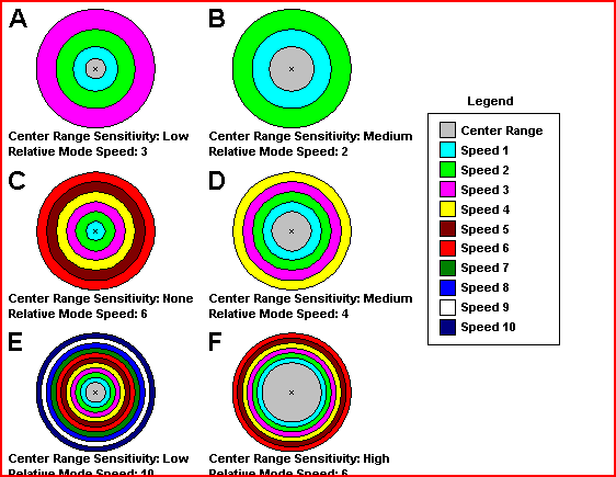 This configuration requires the joystick to move off-center a substantial amount before cursor motion will result, and then there are very fine ranges. Shown for example purposes only. Recommended Users: None Suggested Settings: Lower Relative Mode Speed, or lower Center Range Sensitivity.