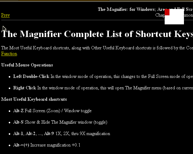 | The Magnifier: for Windows; Area and Full Screen Magnifier; Version 1.50 Release 5; User's Guide | ||