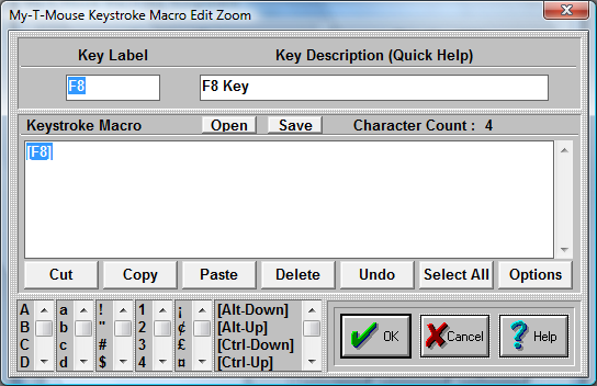You may edit the Keystroke Macro directly in the Edit window. You may wish to refer to the Advanced User Notes for options & details regarding the keystroke macros.
