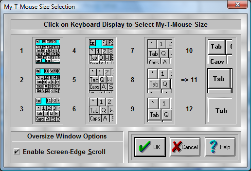 Oversize refers to the state when the My-T-Mouse window is wider than the screen display width. These are the options available here to accommodate the user.
