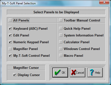 My-T-Soft lets you select which panels are open every time you start My-T-Soft.