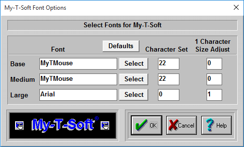 Sizes 1-6 are the Base sizes. For almost all uses, the MyTMouse font is the best choice.