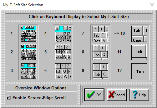 Oversize refers to the state when the My-T-Soft window is wider than the screen display width. These are the options available here to accommodate the user.