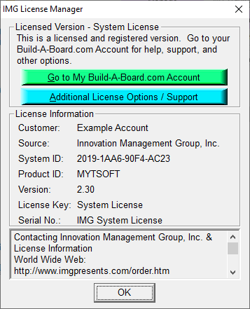 IMPORTANT NOTE: Custom layouts MUST be build from licensed Build-A-Board builders. If a layout is created on Build-A-Board that does not have a license, it will be tagged as "Evaluation", and will not operate as a licensed board, EVEN IF My-T-Soft is properly licensed. You must license Build-A-Board, and rebuild the custom layout (rebuild the KBF file).