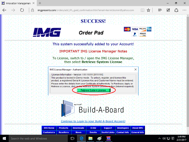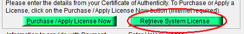 To license My-T-Soft, select "System License Options", then click on "Retrieve System License"