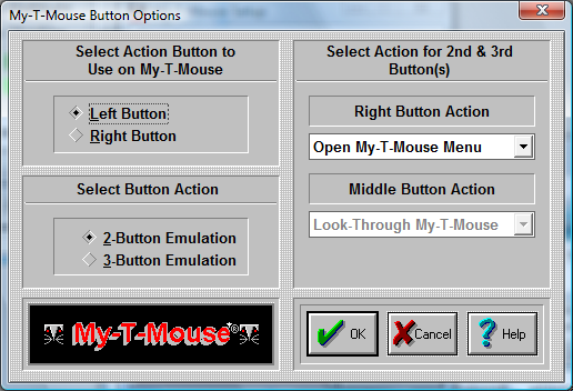 Select Mouse Button to use on My-T-Mouse Here you define which button on your Mouse is going to be used as a point-and-click button. This button will be the execution button.
