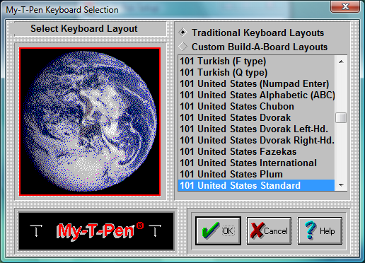 My-T-Pen can operate with many different keyboard layouts. By selecting the same keyboard layout that Windows uses, you can synchronize the display on My-T-Pen with the characters generated in your application.
