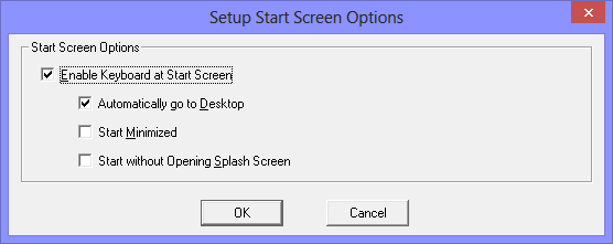 Check Enable Keyboard at Start Screen On to enable the automatic startup of My-T-Soft after the user logon and during the display of the Start Screen. With no other options selected, My-T-Soft will appear as it is currently configured.