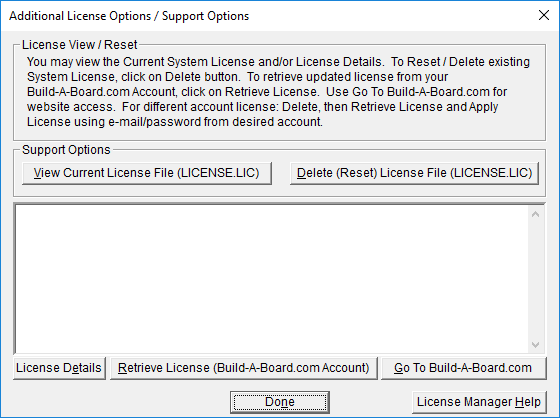 Note: The "Retrieve System License" uses a unique identifier to automatically license your system (which is only sent if the license is added or purchased after using the "Retrieve System License" button). If you try this on a different system, or after a system update or re-install (or after a change to this unique ID), the software will not license automatically. You will either need to add the system to your existing Build-A-Board.com account or purchase the appropriate license.