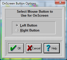 OnScreen lets you define which button on your Mouse (or other pointing device) is going to be used as a point-and-click button. This button will be the execution button that presses on a OnScreen button. Select Left Mouse Button for standard operation, or Select Right Mouse Button.